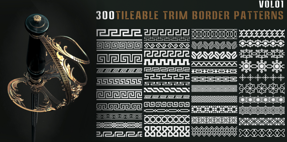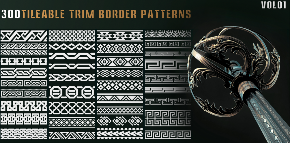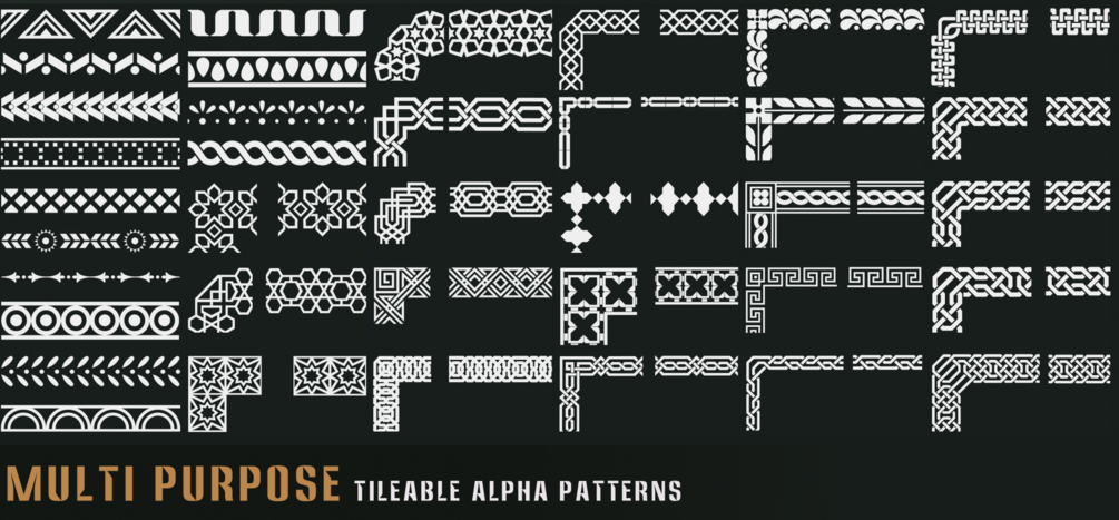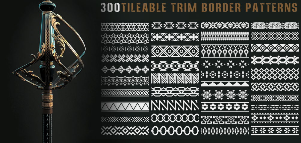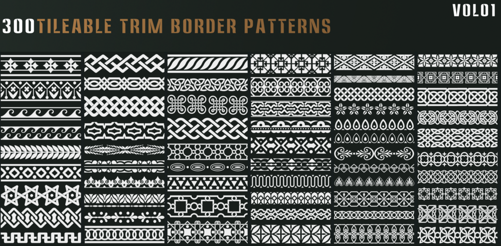 Here is a set of 300 Various 4k PNG tileable trim border patterns.